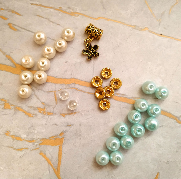 مختویات بسته شامل 9 مروارید صدفی ، 12 مروارید رنگی ، آویز ، 2 عدد کریستال و 6 عدد رینگ میباشد .