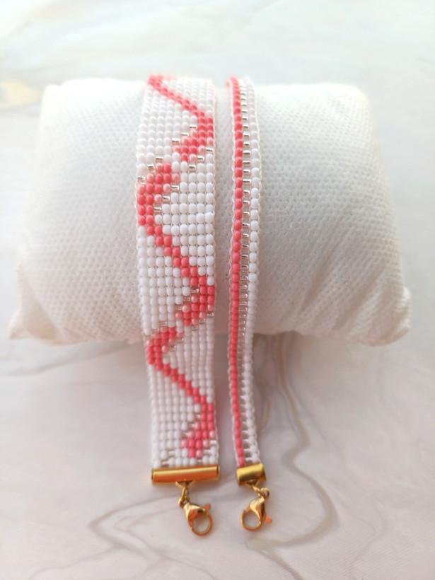دستبند بافت FGB مدل 2116 رنگ گلبهی با مونجوق‌ها و طراحی مقاوم
