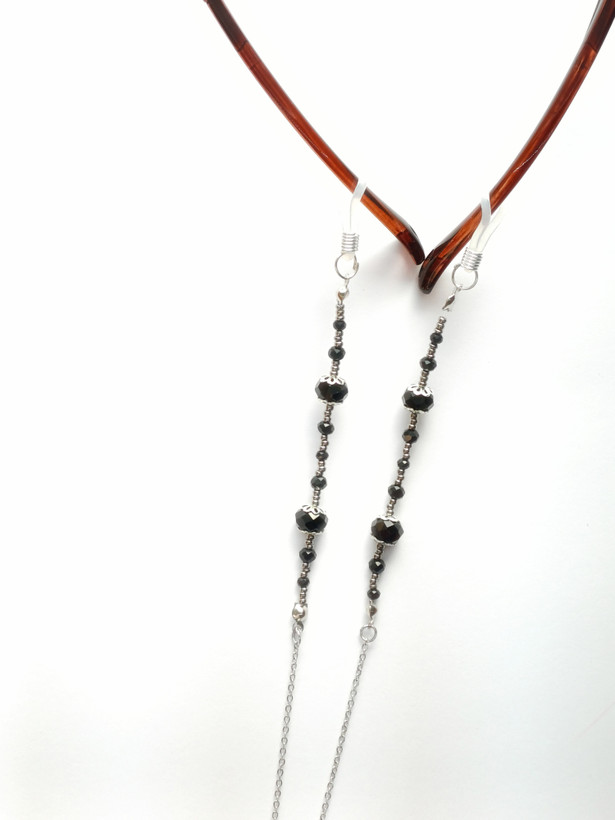 جنس: زنجیر استیل نقره ای - کریستال مشکی