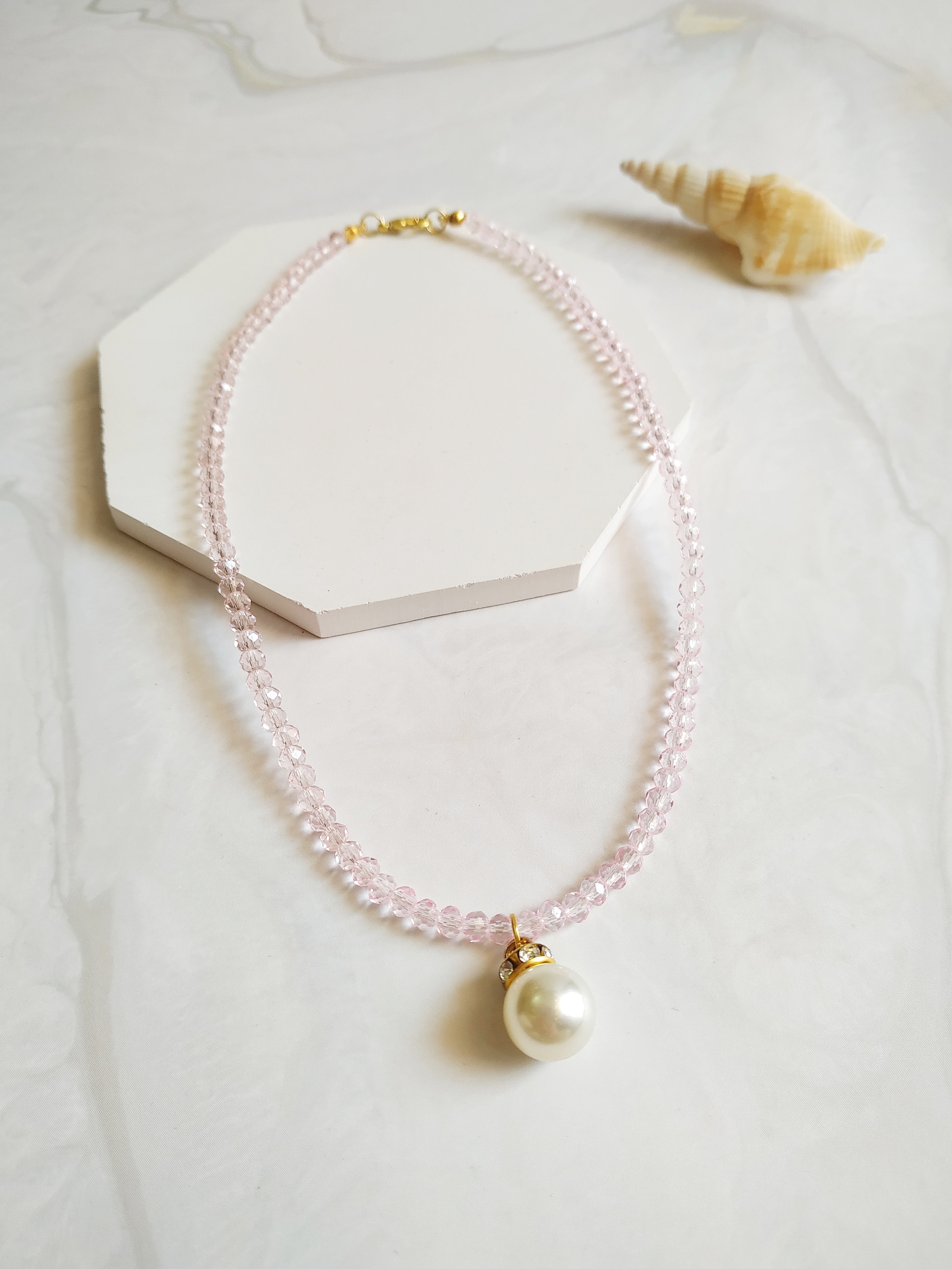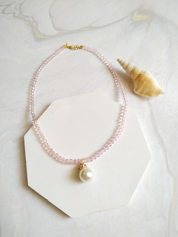 جنس: کریستال شیشه ای صورتی، مروارید، آویز مروارید سواروزکی